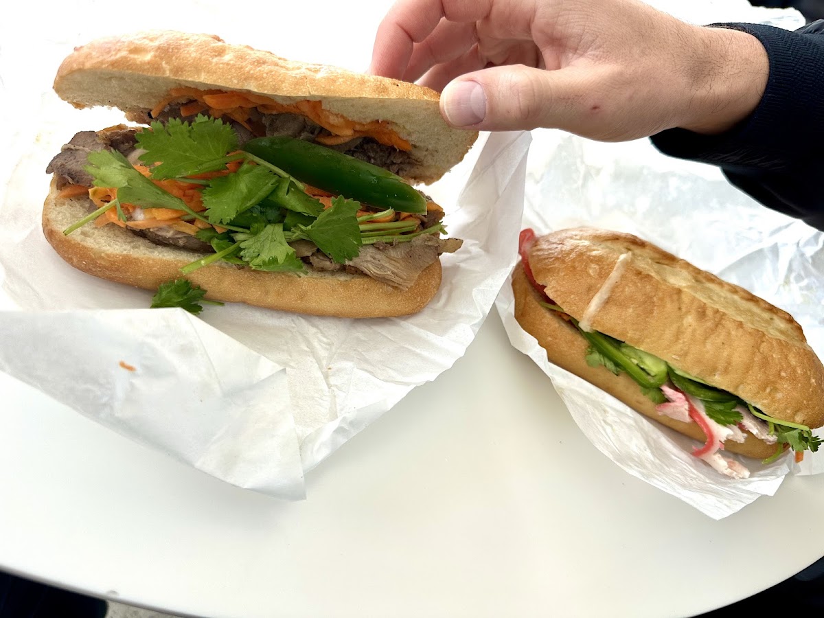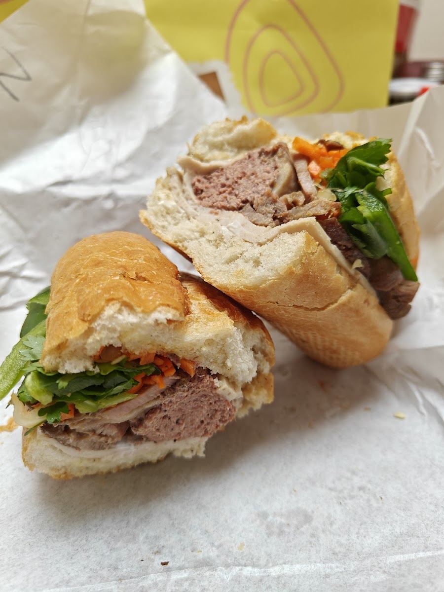 Amazing Bang Mi at very reasonable price (5.50 each at the time of this post). It's located in the Tenderloin but it's well worth the trip. If you're squeamish about the area, get to Larkin x Market and go up Larkin and it's a few blocks behind the civic center buildings on the right side. Take out and cash only. It's a very small place so a line can suddenly form out the door, but they are pretty quick - just have your order ready.